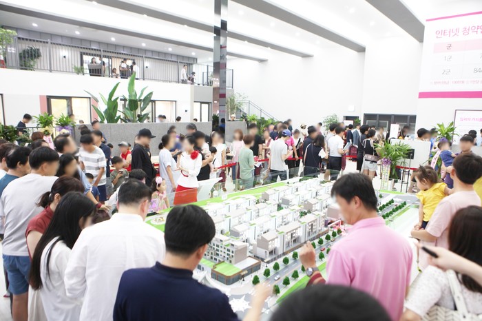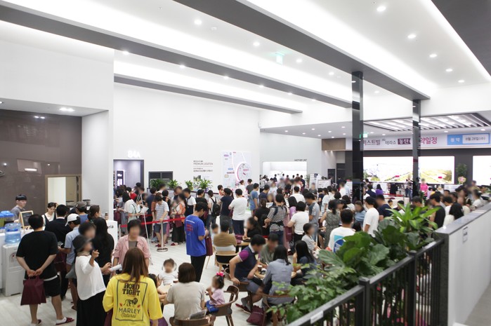 실제로 견본주택 오픈 전 이른 아침부터 많은 사람들이 문이 열리기만을 기다리며 긴 대기 줄을 형성했고 문이 열리자마자 견본주택 내부는 방문객들로 금세 가득 찼다. 견본주택에는 내방객들이 단지 모형도와 유니트를 꼼꼼히 살펴보는 모습을 볼 수 있었고 1순위 청약요건 및 분양가를 문의하기 위한 사람들로 상담석은 인산인해를 이뤘다.