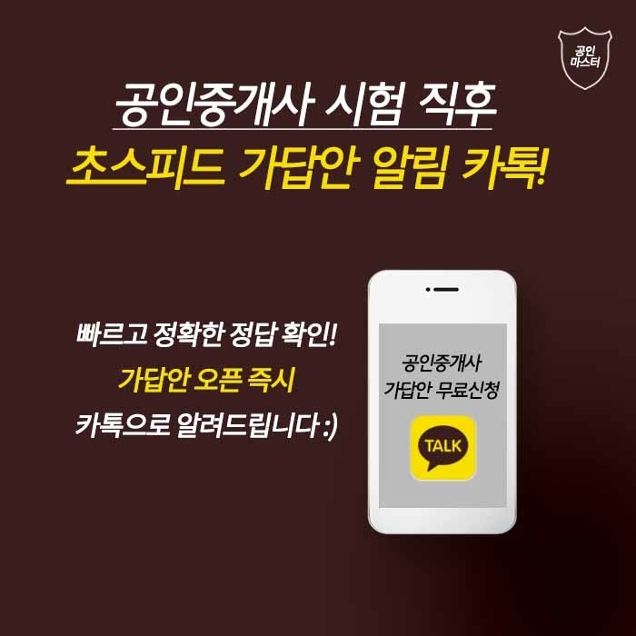 공인마스터 운영자는 "공인중개사를 꿈꾸는 회원들에게 도움이 되는 커뮤니티를 만드는 것이 목표”라며, “시험 당일 가답안 오픈 즉시 카카오톡을 통해 빠른 알림을 제공하니 많은 참여 부탁드린다”고 말했다.