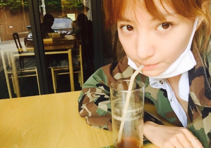 공개된 사진 속 조은지는 군복을 입고 커피를 마시고 있는 모습이 담겨 있다.