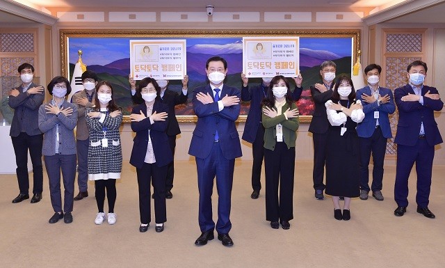 이용섭 시장은 이번 캠페인에 참여하며 “코로나19로 지치고 힘든 일상을 보내고 있는 광주시민들에게 위로와 격려를 보내고 싶어 캠페인에 참여했다”며 “스스로를 안아주고 다독이는 ‘토닥토닥’ 캠페인을 통해 광주시민들께서 건강하고 활기찬 생활을 이어가길 바란다”고 말했다.