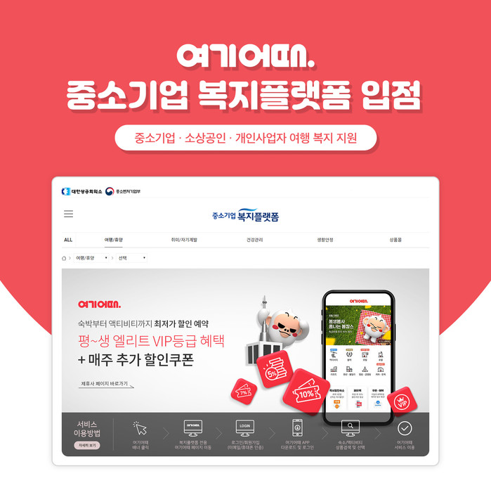 [시민일보 = 고수현 기자] 국내 대표 종합숙박·액티비티 예약서비스 여기어때가 중소기업 근로자의 복지 향상을 위해 '중소기업 복지플랫폼’에 입점한다고 22일 밝혔다.