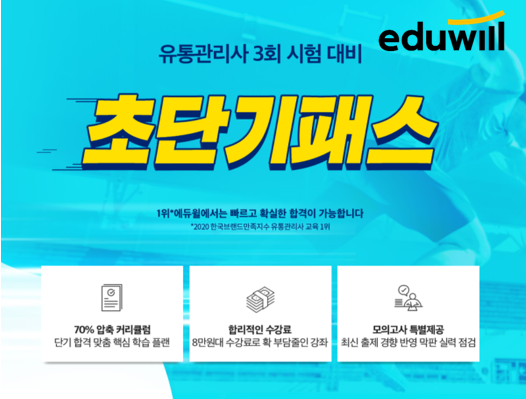 [시민일보 = 여영준 기자] 종합교육기업 에듀윌(대표 박명규)이 유통관리사 3회 시험 대비 ‘초단기패스’ 과정을 출시했다.