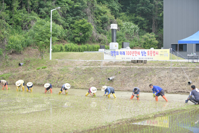 경기 양평군 청운면이장협의회에서는 3일 여물리 일원 농경지 2479㎡에서 사랑나눔 모내기 행사를 개최해 토종볍씨로 모내기를 진행했다. 이날 심은 모는 가을 추수 후 지역내 홀몸노인 등 어려운 이웃들에게 전달될 예정이다. 사진은 참여자들이 모내기를 하고 있는 모습. (사진제공=양평군청)