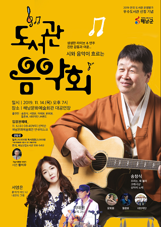 음악회에 앞서 해남군 독서왕 선발대회 입상자 시상식도 열릴 예정이다.