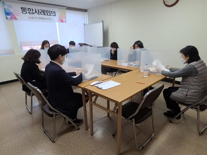 경기 동두천시사회복지협의회 무한돌봄네트워크팀은 최근 집중 사례관리 제공가구의 어려움 해소방안 등을 수립하기 위한 통합사례회의를 개최했다. 이날 회의에서는 위기가구 등 2건을 상정해 향후 집중 사례관리 종결 후 드림스타트와 건강가정다문화가족지원센터에서 각각 주 사례관리를 추진하기로 했다. 사진은 회의 진행 모습. (사진제공=동두천시청)