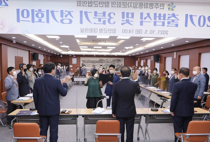 민주평화통일자문회의 함안군협의회 제20기 출범식이 5일 오후 2시 함안군청 3층 대회의실에서 조근제 함안군수, 이광섭 함안군의회 의장과 군의원, 경남도의원, 자문위원 등 47명이 참석한 가운데 개최됐다.