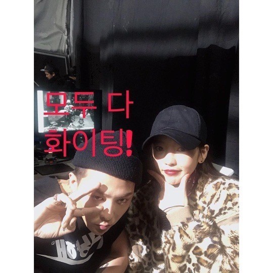 공개된 사진 속 구하라 지드래곤은 나란히 앉아 카메라를 바라보고 있는 모습이 담겨있다.