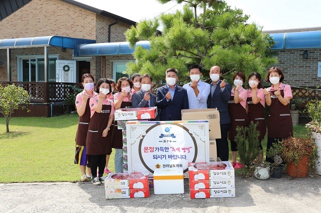 [해남=정찬남 기자] 전라남도의회 김성일 부의장(더불어민주당, 해남1)은 21일 민족 고유 명절인 추석을 앞두고 해남군 마산면 소재 해남가나안요양원과 황산면 소재 황산소망요양원을 방문했다.