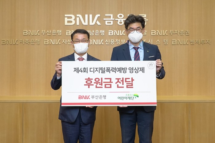[시민일보 = 여영준 기자]BNK부산은행이 25일 부산은행 본점에서 초록우산어린이재단 부산지역본부에 학교폭력 예방을 위한 후원금 3000만원을 전달했다.