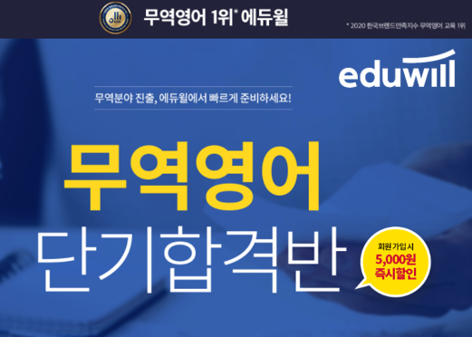 [시민일보 = 여영준 기자] 종합교육기업 에듀윌(대표 박명규)이 무역 분야 진출을 목표로 하는 수험생을 위해 ‘무역영어 단기합격반’ 과정을 선보인다.