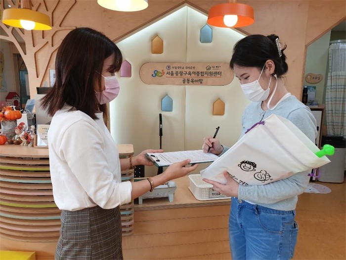 특히, 놀이키트는 손도장 놀이책, 사운드북, 대왕 비눗방울 등 공동육아방을 이용하는 영유아들로부터 호응이 높았던 놀잇감으로 구성됐다.