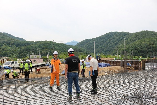 지난 17일 현장에서 공사 진행 상황을 살펴보며 감독관, 건축소장 등 관계자들과 소통하였다.