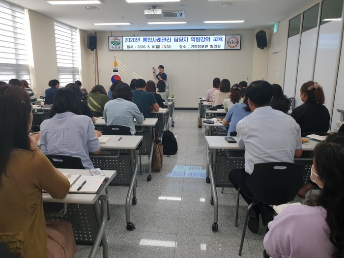 거창군은 지난 8일 거창창포원 회의실에서 군·읍면과 공공부문 사례관리 연계협력기관 등 민관의 통합사례관리 담당자 40여명이 참석한 가운데 역량강화 교육을 가졌다고 밝혔다.