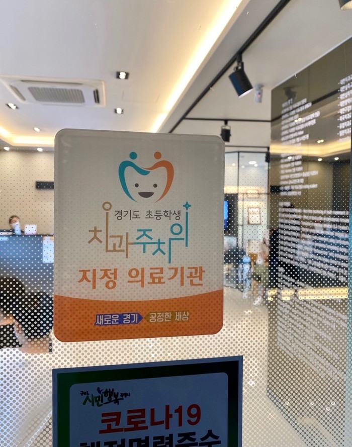 | ▲ 초등학생 치과주치의 사업 명패, 사업 안내문. |