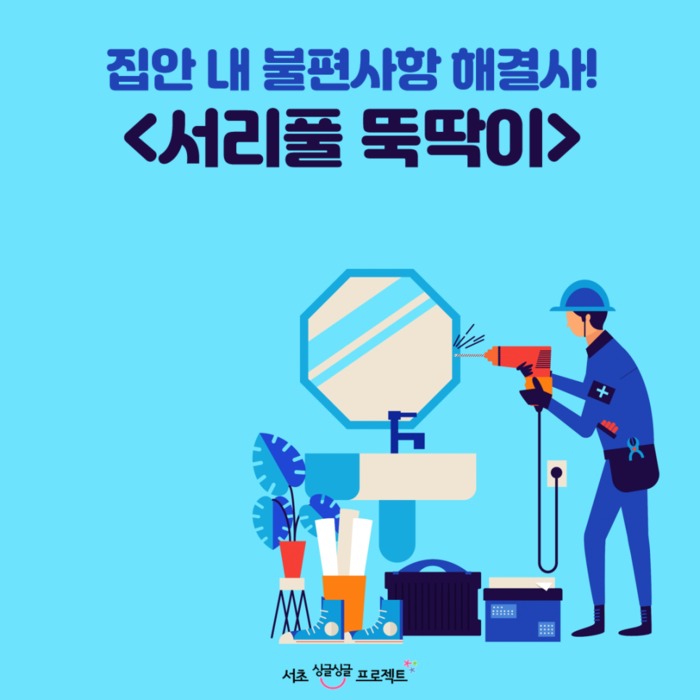 세 번째, 서리풀 뚝딱이는 사소하지만 혼자서는 해결하기 어려운 집안 내 간단한 수리·수선을 지원한다. 일상생활 속 소소하지만 갑자기 발생되는 어려움을 해결할 수 있도록 가구당 연 10만원 상당 이내의 수리를 지원, 1인가구가 겪는 불편을 최소화하고자 한다.