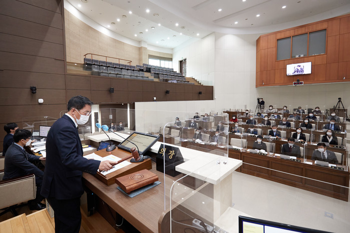 김기준 의장은 개회사를 통해 “이번 임시회는 올해 살림을 마무리하는 추가경정 예산안과 조례안, 동의안 등이 상정되었으니 안건 하나하나에 심혈을 기울여 올 한 해를 알차게 마무리 해 주길 바란다”고 말했다.