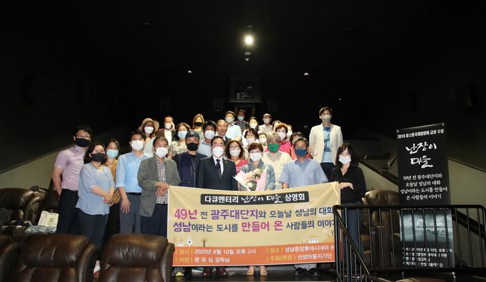이날 윤창근 의장은 수정구 신흥동 롯데시네마에서 열린 다큐멘터리 ‘난장이 마을’상영회에 참석했다. 2019 휴스톤 국제영화제에서 금상을 수상한 ‘난장이 마을’은 광주대단지사건 참여자와 성남에 오래 거주한 주민들의 경험담을 재구성해, 한 도시가 만들어지고 재개발로 인해 사라지는 과정을 영상으로 기록했다.