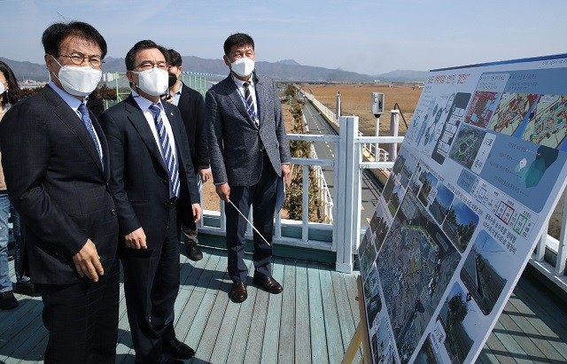 [강진=정찬남 기자] 전남 강진군이 지난해 환경부에서 추진한 ‘스마트 그린도시 공모사업’에 최종 선정돼 국비 100억 원을 확보한 가운데 홍정기 환경부 차관이 지난 9일 강진군 ‘스마트 그린도시사업’대상지인 강진만 생태공원을 방문했다.