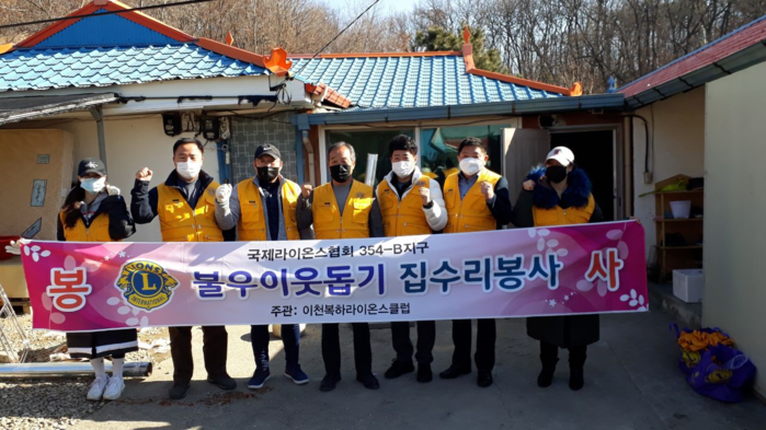 경기 이천복하라이온스클럽은 최근 중리동에 거주하는 기초생활수급자 장애인가구의 열악한 주거 개선을 위해 집수리를 실시했다. 이날 봉사자들은 단열·도배 및 장판 교체, 지붕 빗물받이 수선, 내부화장실 문 설치 등을 실시했다. 사진은 집수리에 참여한 봉사자들이 기념촬영을 하는 모습. (사진제공=이천시청)