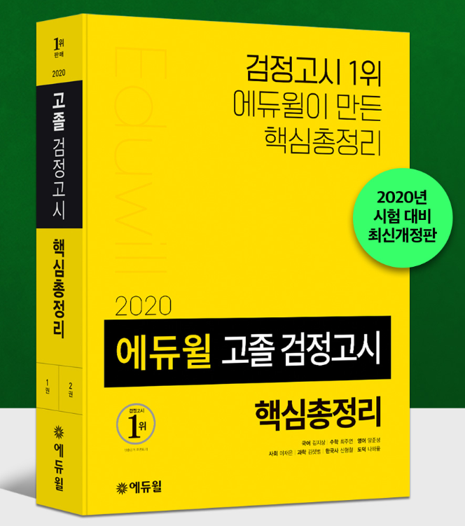 1위는 ‘2020 에듀윌 고졸 검정고시 핵심총정리’ 수험서가 올랐다. 7과목의 핵심이론과 실전문제 700제로 시험에 출제될 내용을 압축해 담은 해당 교재는 2020년 고졸 검정고시의 출제범위인 최신 교육과정을 반영했고, 지난해 기출문제를 포함한 5개년 기출문제를 분석해 선별한 키워드의 핵심내용을 포함했다.