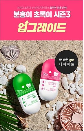 GRN 분홍이 초록이는 가르시니아 추출물인 HCA, 녹차카테킨이 함유된 제품으로 대상은 20, 30대와 40, 50대까지 추천된다.