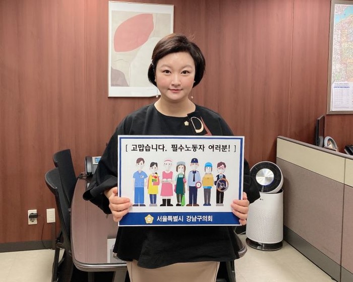 [시민일보 = 이대우 기자] 김현정 서울 강남구의회 의원이 최근 필수노동자를 응원하는 ‘고맙습니다. 필수노동자’ 챌린지에 동참했다.