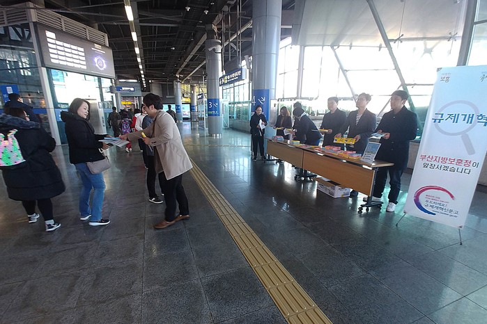 네 번째인 이번 회의에서는 이전과 달리 연구모임원 15여명이 부산역을 이용하는 시민들에게 규제혁신 메시지가 담긴 홍보물을 직접 나눠주며, 불필요한 행정규제 개선 과제를 위한 적극적인 건의와 국민 제안을 이끌어 내기위한 캠페인을 실시했다.