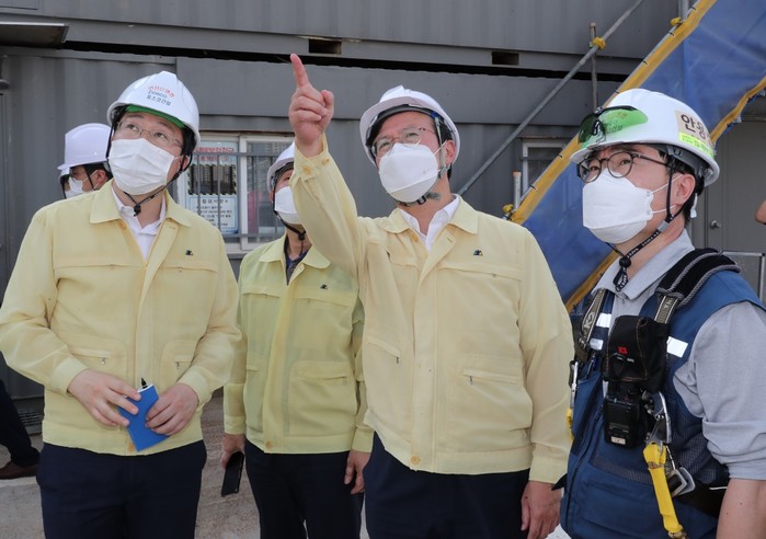 서울 영등포구는 최근 태풍 ‘바비’ 북상에 대비한 긴급대책회의를 갖고, 태풍으로 인한 구민들의 피해가 없도록 사전 안전취약시설 현장점검을 실시했다. 구는 지난 25~26일 양일간 구청장 주재의 긴급대책회의를 열어, 기상특보에 따른 비상 근무태세를 갖추도록 조치하고 부서별 대응방안, 재난발생 시 임무 숙지, 상황보고 철저 등의 사전 조치사항을 중점 점검했다. 사진은 건축 현장의 안전관리 점검에 나선 채현일 구청장의 모습.(사진제공=영등포구청)