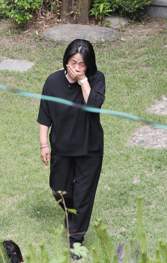 눈물 흘리는 윤미향
