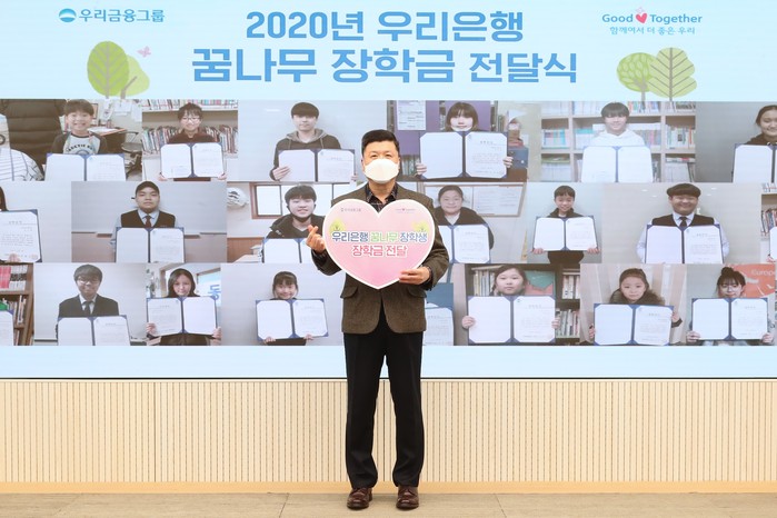 ‘우리은행 꿈나무 장학사업’은 임직원들이 급여 일부를 자발적으로 기부해 조성한 ‘우리사랑기금’을 활용한 미래세대 육성사업으로, 2011년부터 10년째 지속해 온 사회공헌사업이다.