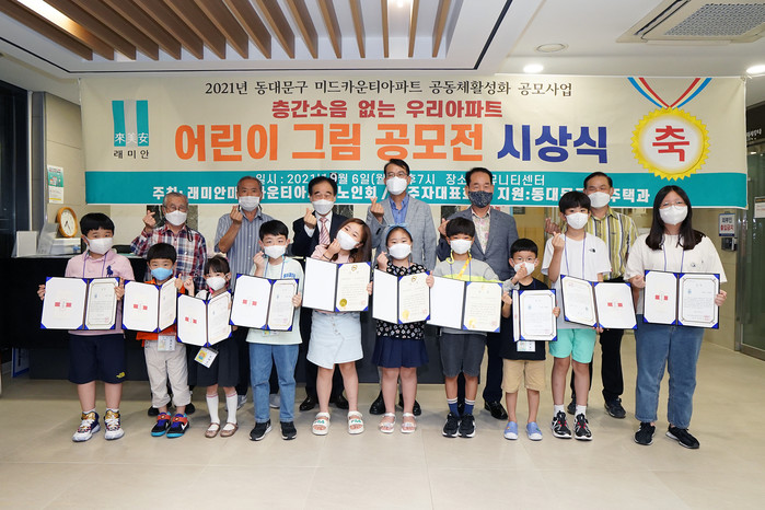 [시민일보 = 이대우 기자] 서울 동대문구(구청장 유덕열)가 답십리1동 내 래미안미드카운티아파트에서 따뜻하고 밝은 공동체를 조성하고 이웃 간 배려하는 아파트 문화를 만들기 위해 ‘층간소음 없는 우리 아파트’라는 주제로 어린이 그림 공모전을 개최했다.