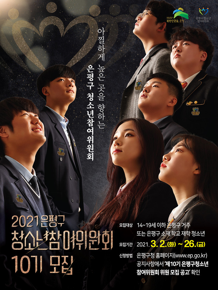 [시민일보 = 이대우 기자] 서울 은평구(구청장 김미경)는 '제10기 은평구 청소년참여위원회' 위원을 공개 모집한다고 밝혔다.