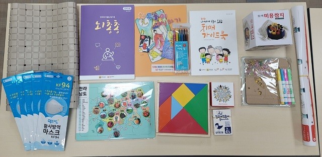 | ▲ 기억주머니 지원사업 학용품 및 마스크 / 영암군 제공 |
