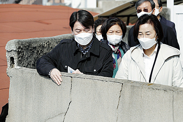 국민의당 안철수 대표가 21일 서울 성북구 성북5구역을 방문해 노후 주거 현장을 둘러보고 있다.