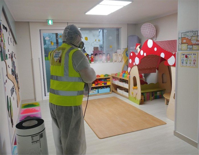 | ▲ 지역내 어린이집 방역소독 작업 모습. (사진제공=송파구청) |
