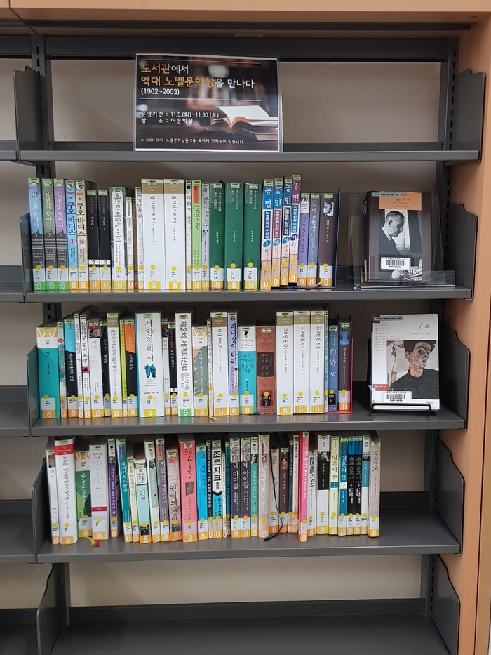 어문학실에는 1902년 수상자 테오도어 몸젠의‘몸젠의 로마사’부터 2003년 수상자 J.M 쿠치의‘마이클 K’까지 79종 84권을 별도 서가에 연대순으로 전시한다. 시민도서관은 이를 통해 시민들에게 문학성이 있는 작품을 만날 수 있는 기회를 제공할 계획이다.