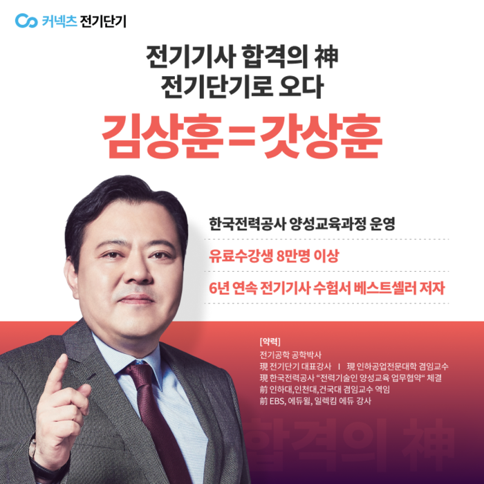 [시민일보 = 여영준 기자] ST유니타스(ST Unitas)의 전기자격증 교육 전문 브랜드 ‘커넥츠 전기단기(이하 전기단기)’는 전기 분야에서 매년 수백 명에 달하는 전기기사 및 공기업 합격자를 배출한 김상훈 강사를 신규 영입했다고 13일 밝혔다.