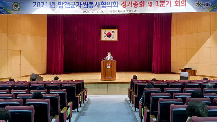 합천군 자원봉사협의회(회장 이정임)는 지난 15일 종합사회복지관 대강당에서 협의회 임원 및 읍면 회장, 총무 등 50여 명이 참석한 가운데 2021년 정기총회 및 1분기 회의를 개최하였다.