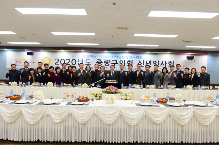 [시민일보 = 여영준 기자] 서울 중랑구의회(의장 조희종)는 9일 의회 7층 소회의실에서 전체 구의원들과 구청 공무원들이 참석한 가운데 경자년의 힘찬 출발을 알리는 2020년도 신년인사회를 개최하고, 새해에도 더욱 새로운 각오로 구민들을 위해 의정활동에 매진할 것을 다짐했다.