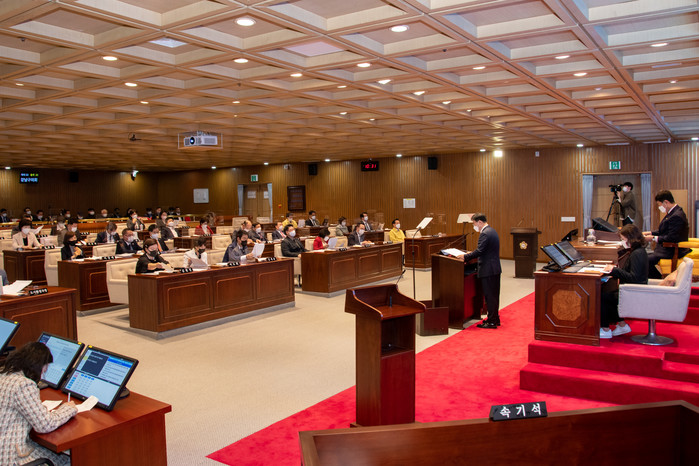 또한, 이날 이뤄진 5분 자유발언에서 박다미 의원은 1회용품 사용을 줄이기 위한 작은 실천을 요청했고, 김세준 의원은 배달앱 수수료의 문제점을 제기하며 공공배달앱 활성화를 위한 방안제시를 주문했다. 이어 이호귀 의원은 탄천변 휴식 등 체육공간 조성 및 공공시설부지 관리방안에 대한 문제를 제기하고 집행부가 적극적으로 대책을 마련해줄 것을 강조했다.