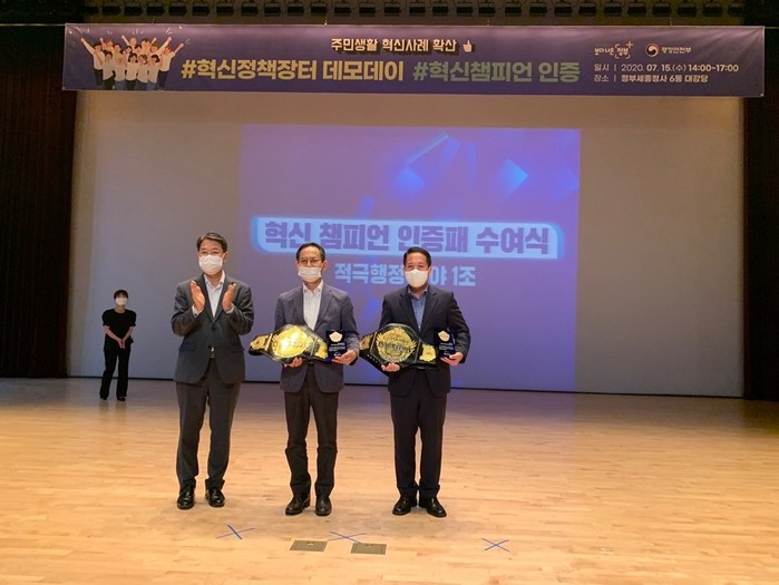 혁신 챔피언 인증패 수상의 쾌거는 지난 해 정부혁신 경진대회에 출전하여 기초자치단체에서는 유일하게 ‘365일 24시 기간제 보육’ 사례로 대통령상을 수상한 것이 계기가 되었고, 해를 거듭할수록 심각해지고 있는 저 출산시대에 혁신사례로‘아이 낳고 키우기 좋은 환경’에 걸 맞는 좋은 사례로 호평을 받았다.