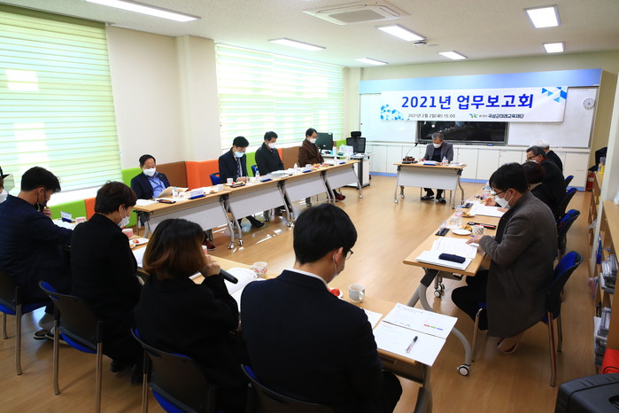 지난해 설립돼 전국 최초로 지역교육 민·관·학 거버넌스 모델을 시험하고 있는 전남 곡성군 미래교육재단이 2일 첫 주요업무 보고회를 개최했다. 이날 회의에서 임직원들은 재단 사업을 비전에서 도출된 전략과제에 맞게 정비하기 위한 다양한 의견을 나눴다. 사진은 보고회가 진행되고 있는 모습. (사진제공=곡성군청)