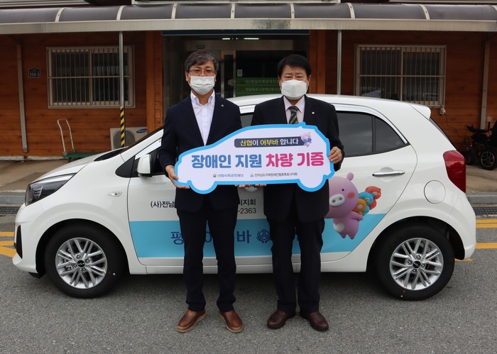 (사)전라남도지체장애인협회 목포시지회에서 진행된 차량 전달식에는 김성주 신협행복나눔부문장과 김홍봉 전남지체장애인협회 목포시지회장, 박우영 중앙회 이사, 김용식 신협전남지역협의회장 및 목포지역 신협 이사장 등이 참석했다.