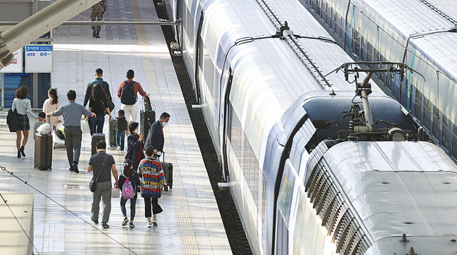 추석을 앞둔 27일 오전 서울역에서 시민들이 열차에 탑승하기 위해 걸어가고 있다.