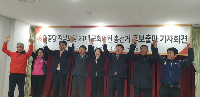 | (사진=황승순 기자)21대 총선에 전남 지역 민중당 출마예정자들이 공식 기자회견을 열고 출마를 선언 했다. |