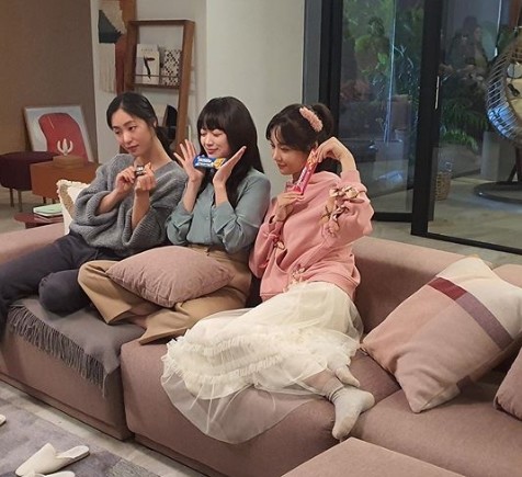 공개된 사진 속 전여빈은 함께 드라마에 출연했던 천우희, 한지은과 다정한 자매같은 모습이다.