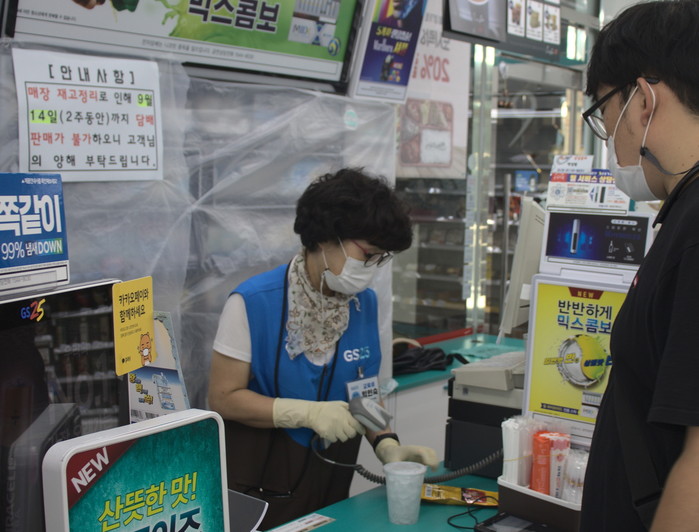 | ▲ 금천시니어클럽에서 금천구 가산동에 개점한 노인 고용 편의점에서 직원이 손님이 고른 물품을 계산하고 있다. (사진제공=금천구청) |