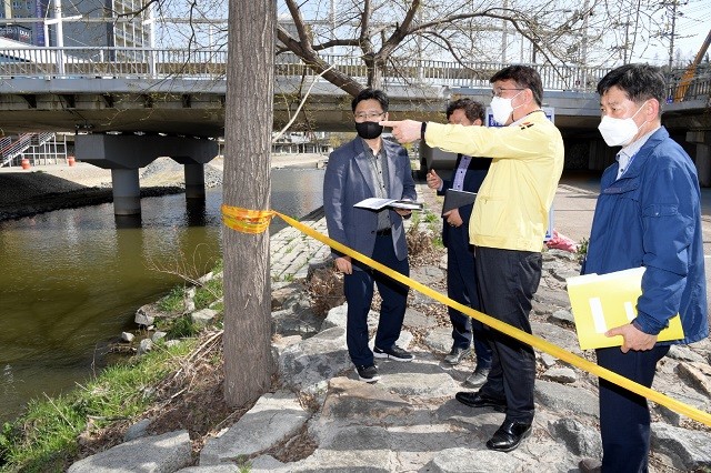 김 부시장은 지난해 집중호우로 피해를 입어 복구공사를 진행하고 있는 ‘광주천 재해복구 공사현장’을 둘러보고 “우기 전까지 조속히 공사를 마무리해 재해가 재발되지 않도록 선제적으로 대응해달라”며 “특히 하천시설물이 유실, 파손되지 않도록 현장관리 철저 및 안전사고 예방에도 만전을 기해야 한다.”고 당부했다.