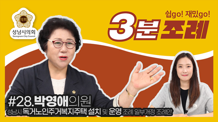 [성남=오왕석 기자] 성남시의회(의장 윤창근)는 13일 ‘성남시의회 3분 조례’ 스물여덟 번째 영상을 SNS에 게시했다.