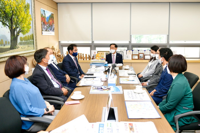 [시민일보 = 여영준 기자] 박진식 서울 도봉구의회 의장이 최근 의장실에서 올해 9월1일자로 새롭게 구성된 제20기 민주평화통일자문회의 도봉구협의회 오연중 회장 및 임원진과 간담회를 열었다.